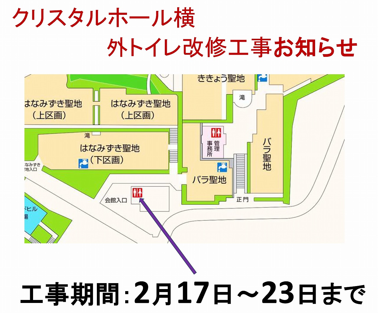 【クリスタルホール横 外トイレ改修工事についてお知らせ】