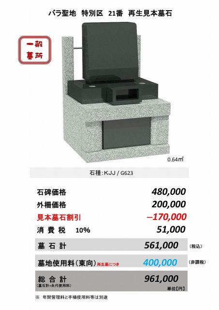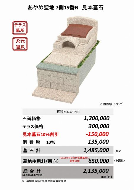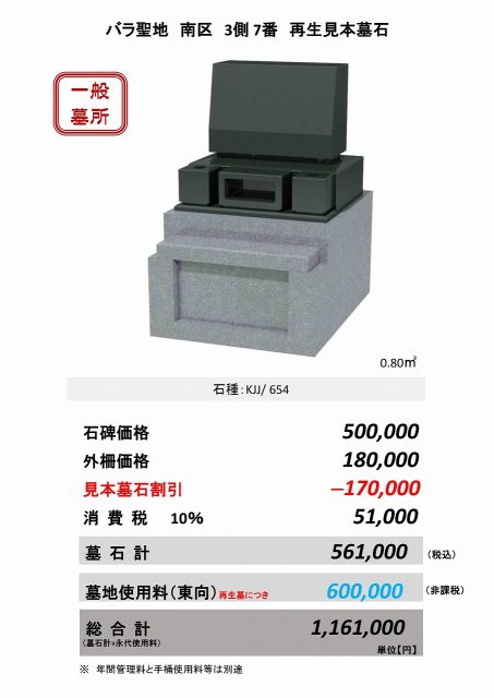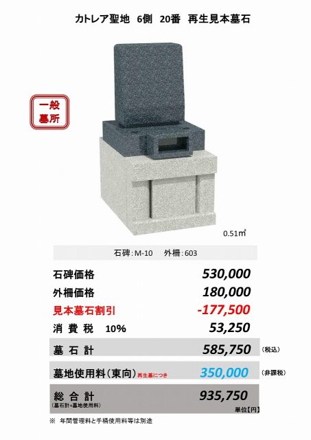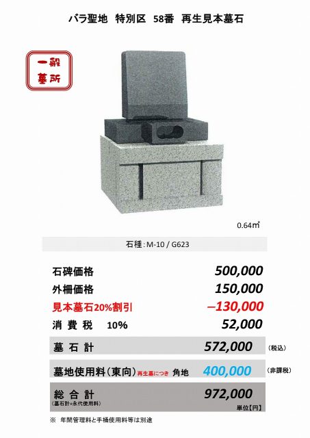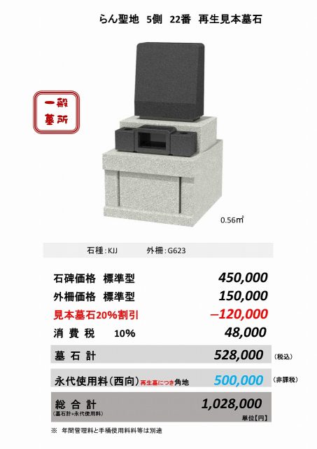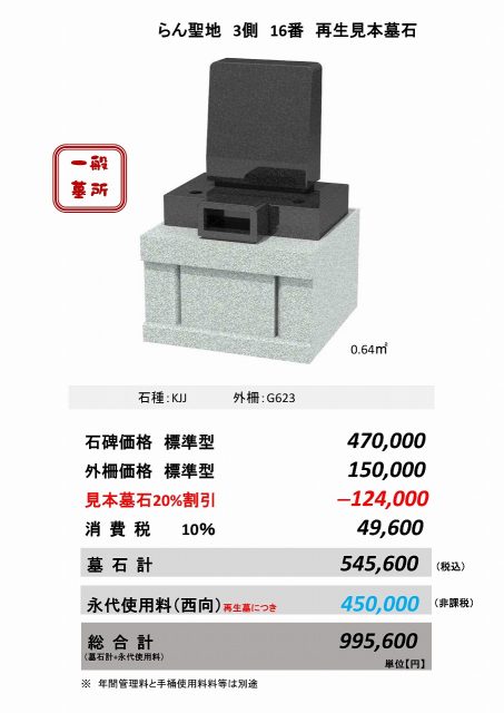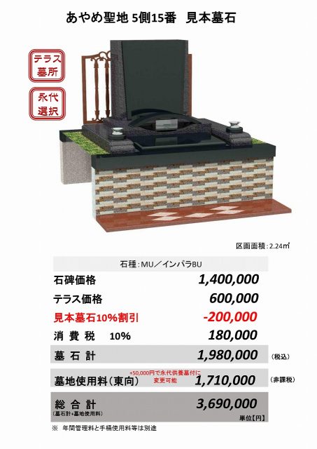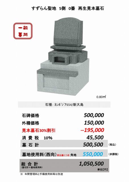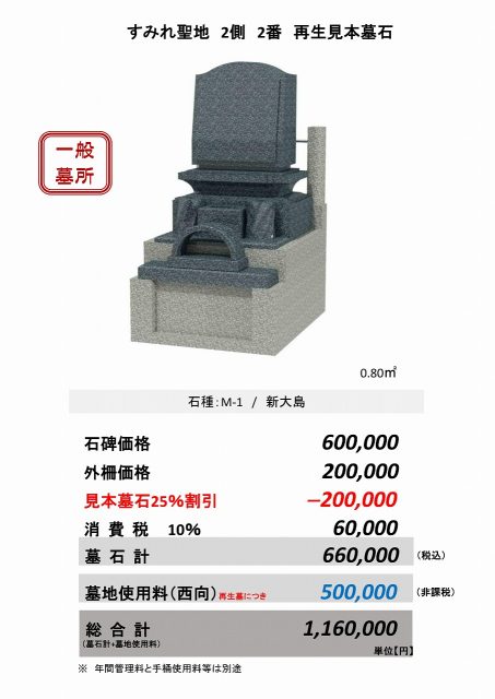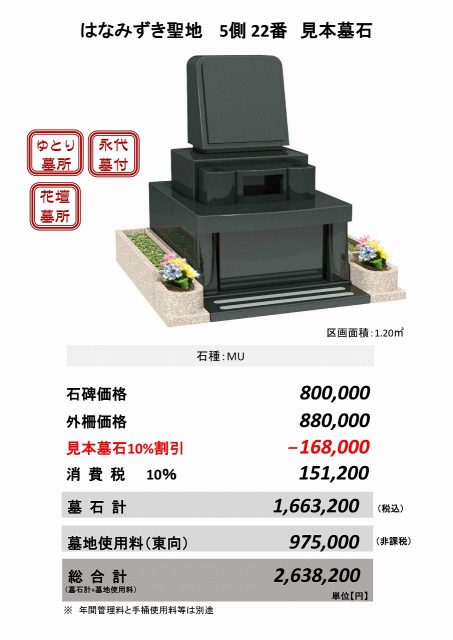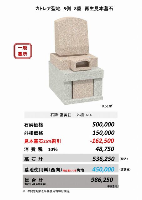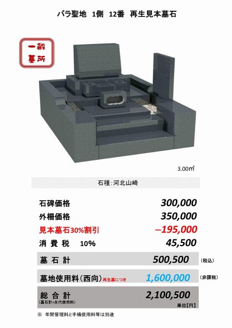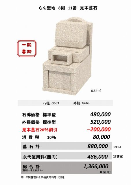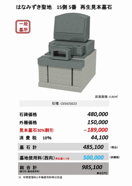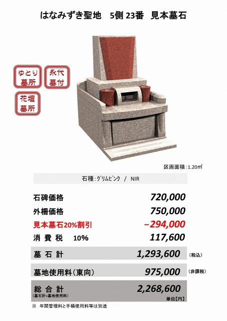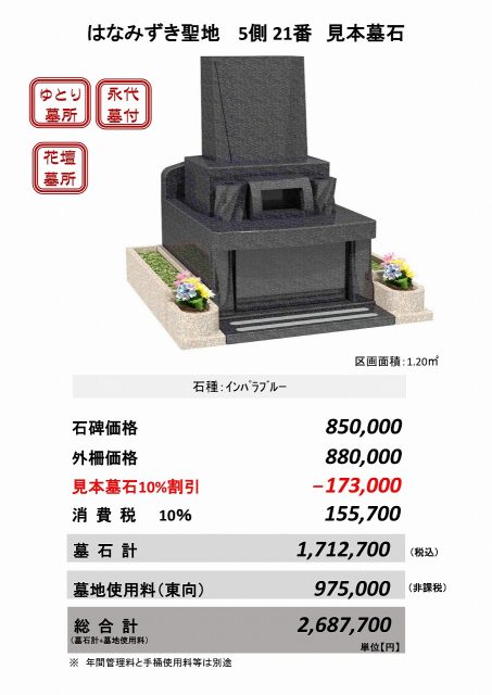 墓地使用料にプラス5万円で永代供養墓付き墓所も可