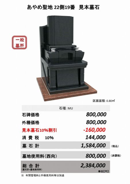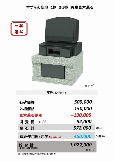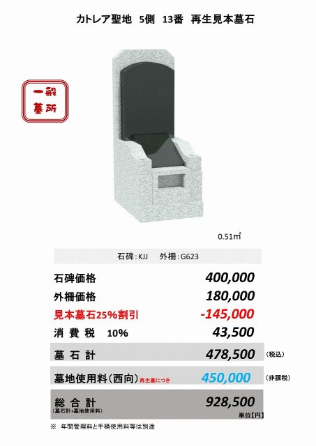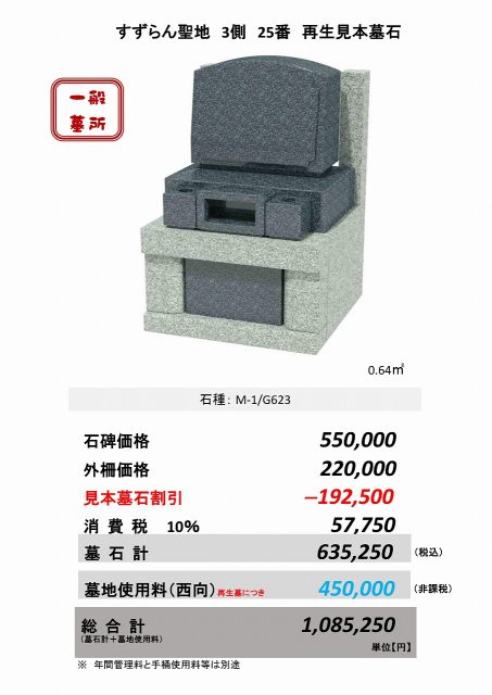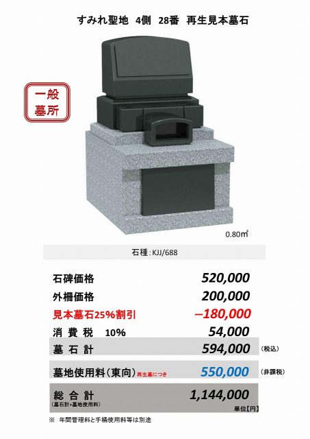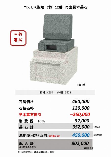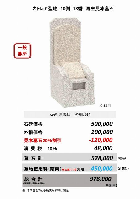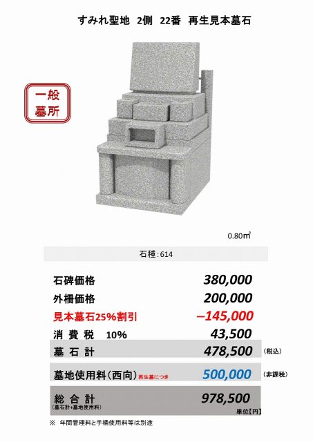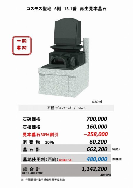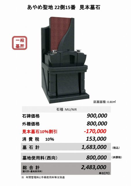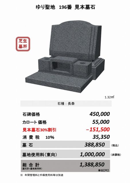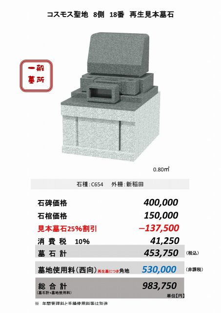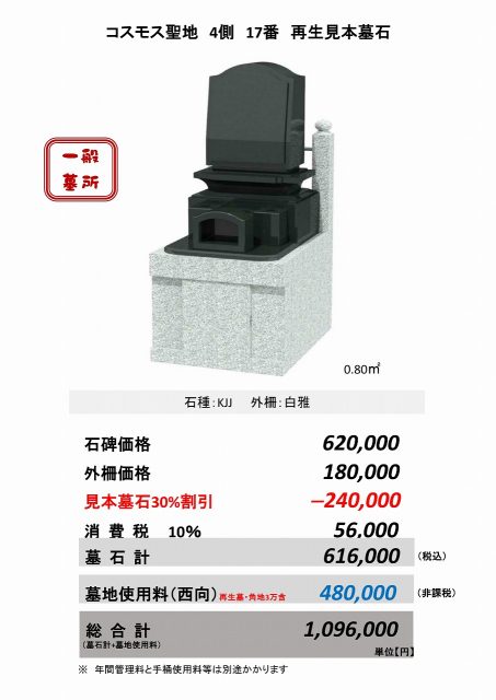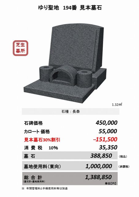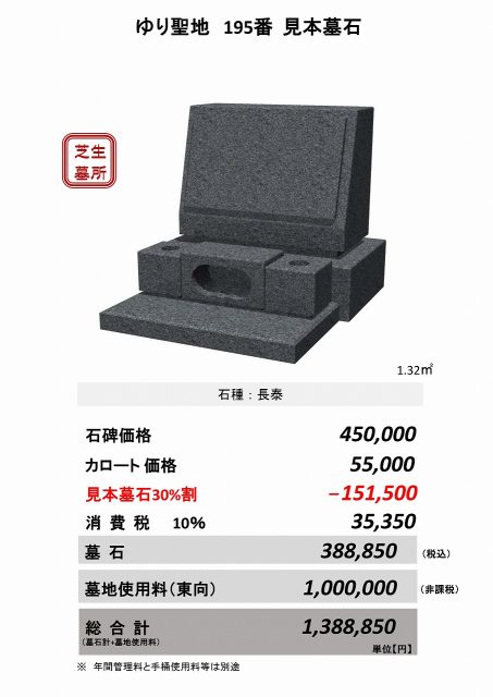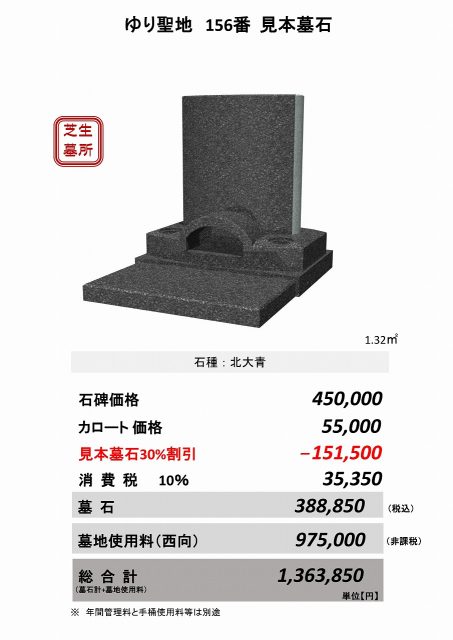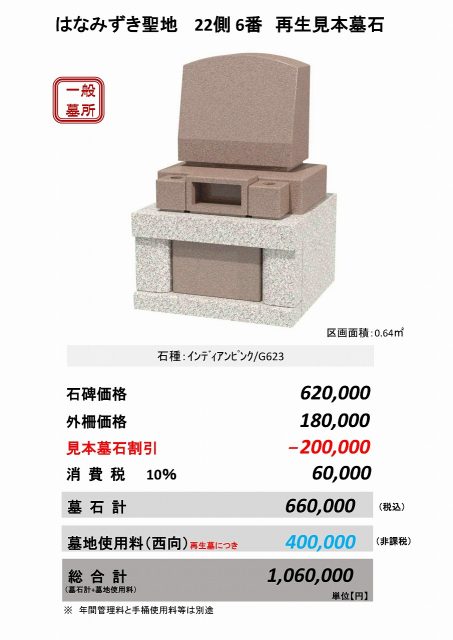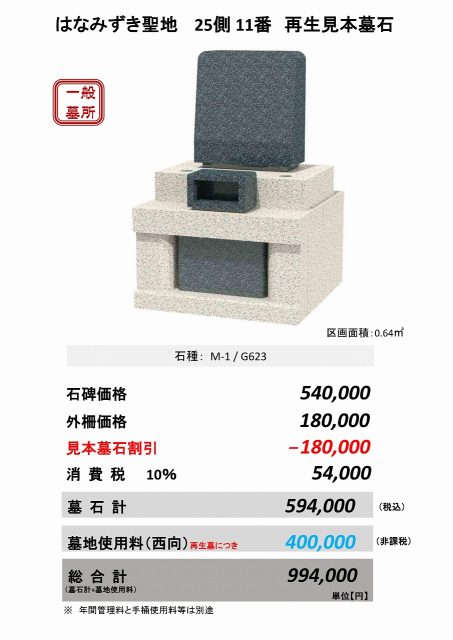 墓地使用料にプラス5万円で永代供養墓付き墓所も可